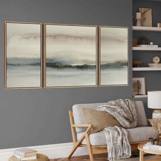 Extra Large Framed Wall Art Pictures for Living Room – Abstract Set of 3 – Natural Grey Taupe Beige – XXL 212cm Wide
